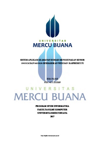 FAJAR, EGA (2017) SISTEM APLIKASI KEAMANAN RUMAH MENGGUNAKAN SENSOR SWITCH DAN MOTION BERBASISKAN WEB DAN RASPBERRY PI. S1 thesis, UNIVERSITAS MERCU BUANA - BUNCIT.