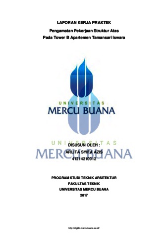SYIFA AZIS, ARLITA (2017) PENGAMATAN PEKERJAAN STRUKTUR ATAS PADA TOWER B APARTEMEN TAMANSARI ISWARA. S1 thesis, UNIVERISTAS MERCU BUANA - BUNCIT.
