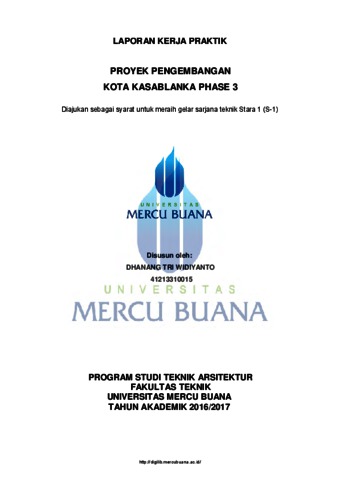 WIDIYANTO, DHANANG TRI (2017) PROYEK PENGEMBANGAN KOTA KASABLANKA PHASE 3. S1 thesis, UNIVERISTAS MERCU BUANA - BUNCIT.