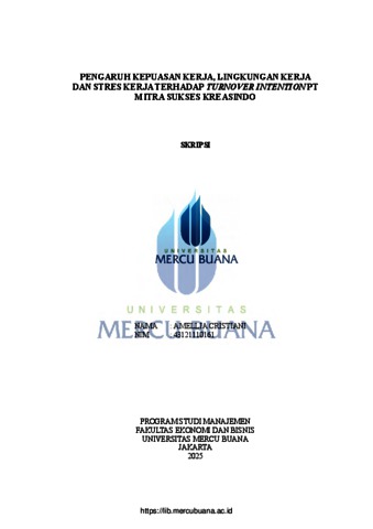 CRISTIANI, AMELLIA (2025) PENGARUH KEPUASAN KERJA, LINGKUNGAN KERJA DAN STRES KERJA TERHADAP TURNOVER INTENTION PT MITRA SUKSES KREASINDO. S1 thesis, Universitas Mercu Buana Jakarta.