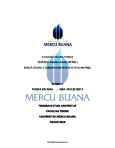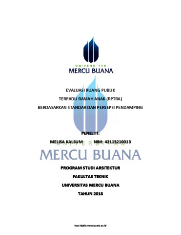 KALSUM, MELISA (2018) EVALUASI RUANG PUBLIK TERPADU RAMAH ANAK (RPTRA) BERDASARKAN STANDAR DAN PERSEPSI PENDAMPING. S1 thesis, UNIVERISTAS MERCU BUANA - BUNCIT.
