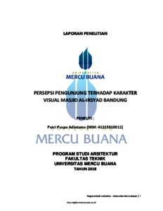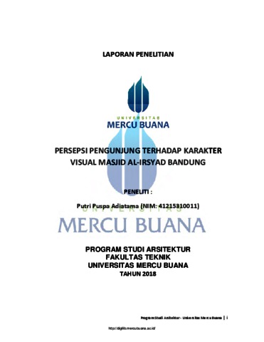 ADIATAMA, PUTRI PUSPA (2018) PERSEPSI PENGUNJUNG TERHADAP KARAKTER VISUAL MASJID AL-IRSYAD BANDUNG. S1 thesis, UNIVERISTAS MERCU BUANA - BUNCIT.