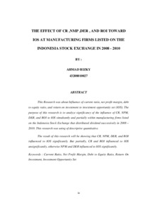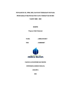 RIZKY, AHMAD (2012) PENGARUH CR, NPM, DER, DAN ROI TERHADAP IOS PADA PERUSAHAAN MANUFAKTUR YANG TERDAFTAR DI BEI TAHUN 2008 - 2010. S1 thesis, Universitas Mercu Buana Jakarta.
