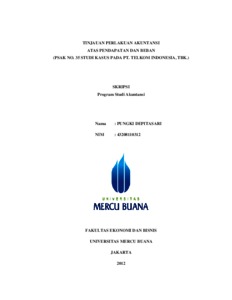 DEPITASARI, PUNGKI (2021) TINJAUAN PERLAKUAN AKUNTANSI ATAS PENDAPATAN DAN BEBAN (PSAK NO. 35 STUDI KASUS PADA PT. TELKOM INDONESIA, TBK. S1 thesis, Universitas Mercu Buana Jakarta.