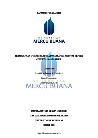 ALIFIANTO, RAYFALDI (2025) PERANCANGAN INTERIOR LABORATORIUM AVIDA MEDICAL CENTRE CONDET JAKARTA TIMUR. S1 thesis, Universitas Mercu Buana Jakarta.