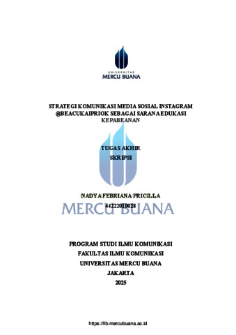 PRICILLA, NADYA FEBRIANA (2025) STRATEGI KOMUNIKASI MEDIA SOSIAL INSTAGRAM @BEACUKAIPRIOK SEBAGAI SARANA EDUKASI KEPABEANAN. S1 thesis, Universitas Mercu Buana Jakarta.