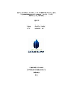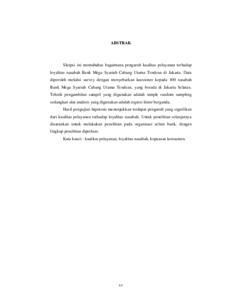 MUNIKO, POPI PERI (2011) PENGARUH KUALITAS PELAYANAN TERHADAP LOYALITAS NASABAH BANK MEGA SYARIAH CABANG UTAMA TENDEAN DI JAKARTA. S1 thesis, Universitas Mercu Buana Jakarta.