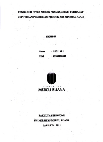 HELMI, HELMI (2011) PENGARUH CITRA MEREK (BRAND IMAGE) TERHADAP KEPUTUSAN PEMBELIAN PRODUK AIR MINERAL AQUA. S1 thesis, Universitas Mercu Buana Jakarta.