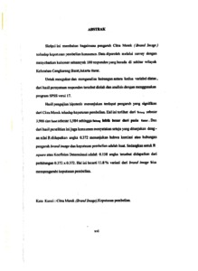 Skripsi ini membahas bagaimana pengaruh Citra Merek (Brand Image) terhadap keputusan pembelian konsumen. Data diperoleh melalui survey dengan menyebarkan kuisoner sebannyak 100 responden yang berada di sekitar wilayah Kelurahan Cengkareng Barat,Jakarta Barat. Untuk mengukur dan menganalisa hubungan antara kedua variabel diatas, dari hasil pernyataan responden tersebut diolah dan analisis dengan menggunakan program SPSS versi 17. Hasil pengujian hipotesis menunjukan terdapat pengaruh yang signifikan dari Citra Merek tehadap keputusan pembelian. Hal ini terlihat dari thitung sebesar 3,966 dan ttabel sebesar 1,984 sehingga thitung lebih besar dari pada ttabel. Dan dari hasil penelitian ini juga konsumen menyatakan setuju yang ditunjukan deng - an nilai R didapatkan angka 0.372 menunjukan bahwa korelasi atau hubungan pengaruh brand image dan keputusan pembelian adalah kuat. Sedangkan untuk R square atau Koefisien Determinasi adalah 0.138 angka tersebut didapatkan dari perhitungan 0.372 x 0.372. Hal ini berarti 13.8% variasi dari brand image bisa mempengaruhi keputusan pembelian.
