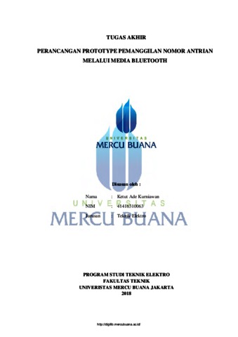 KURNIAWAN, KETUT ADE (2018) PERANCANGAN PROTOTYPE PEMANGGILAN NOMOR ANTRIAN MELALUI MEDIA BLUETOOTH. S1 thesis, UNIVERISTAS MERCU BUANA - BUNCIT.