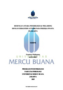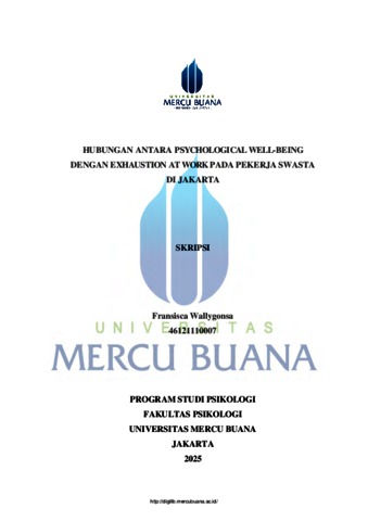 WALLYGONSA, FRANSISCA (2025) HUBUNGAN ANTARA PSYCHOLOGICAL WELL-BEING DENGAN EXHAUSTION AT WORK PADA PEKERJA SWASTA DI JAKARTA. S1 thesis, UNIVERSITAS MERCU BUANA - BUNCIT.