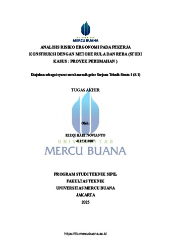 NOVIANTO, RIZQI HADI (2025) ANALISIS RISIKO ERGONOMI PADA PEKERJA KONSTRUKSI DENGAN METODE RULA DAN REBA (STUDI KASUS : PROYEK PERUMAHAN ). S1 thesis, Universitas Mercu Buana Jakarta.