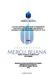 WIRATAMA, DICKY FADILLY (2019) ANALISA KETERKAITAN EMPAT PERSPEKTIF DALAM BALANCED SCORE CARD DENGAN PENDEKATAN SISTEM DINAMIK PADA PT. XYZ. S2 thesis, UNIVERSITAS MERCU BUANA - BUNCIT.