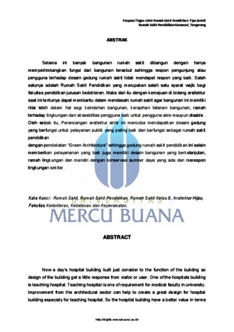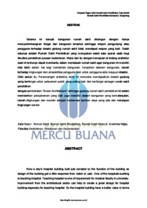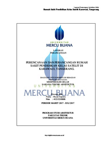 SAPUTRA, RIYAN (2017) PERENCANAAN DAN PERANCANGAN RUMAH SAKIT PENDIDIKAN KELAS SATELIT DI KARAWACI, TANGERANG. S1 thesis, UNIVERSITAS MERCU BUANA.
