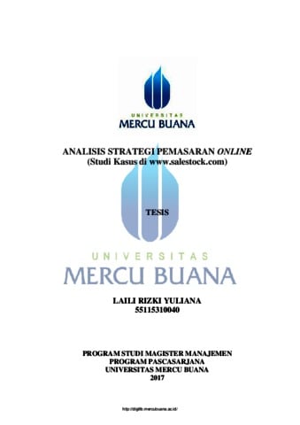 YULIANA, LAILI RIZKI (2017) ANALISIS STRATEGI PEMASARAN ONLINE (STUDI KASUS DI WWW.SALESTOCK.COM). S2 thesis, UNIVERISTAS MERCU BUANA - BUNCIT.