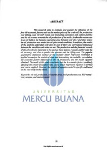 RAHARDJO, SLAMET (2017) PENGARUH 4 FAKTOR EKONOMIS TERHADAP TINGKAT PRODUKSI SUMUR MINYAK (STUDI KASUS PT. PERTAMINA EP ASSET 1). S2 thesis, UNIVERISTAS MERCU BUANA - BUNCIT.