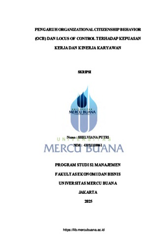 PUTRI, SHELVIANA (2025) PENGARUH ORGANIZATIONAL CITIZENSHIP BEHAVIOR (OCB) DAN LOCUS OF CONTROL TERHADAP KEPUASAN KERJA DAN KINERJA KARYAWAN. S1 thesis, Universitas Mercu Buana Jakarta.