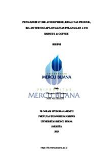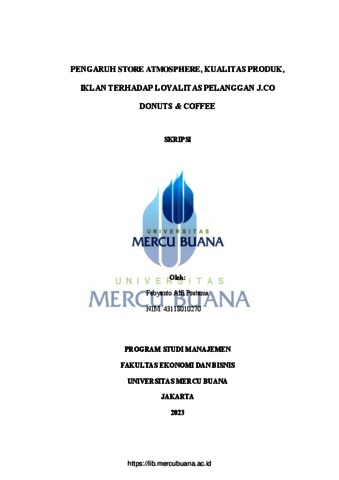PRATAMA, FEBYANTO ALFI (2023) PENGARUH STORE ATMOSPHERE, KUALITAS PRODUK, IKLAN TERHADAP LOYALITAS PELANGGAN J.CO DONUTS & COFFEE. S1 thesis, Universitas Mercu Buana Jakarta.