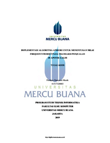 IMPLEMENTASI ALGORITMA APRIORI UNTUK MENENTUKAN NILAI FREQUENT ITEMSET PADA TRANSAKSI PENJUALAN DI APOTIK GALIH.