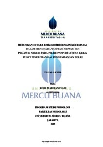 WARDIANSYAH, ROBI (2025) HUBUNGAN ANTARA EFIKASI DIRI DENGAN KECEMASAN DALAM MENGHADAPI MUTASI MENUJU IKN PEGAWAI NEGERI PADA POLRI (PNPP) DI SATUAN KERJA PUSAT PENELITIAN DAN PENGEMBANGAN POLRI. S1 thesis, UNIVERISTAS MERCU BUANA - BUNCIT.