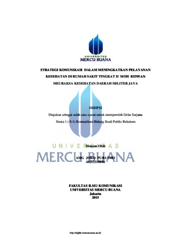 PURATMO, AMG JOKO (2015) STRATEGI KOMUNIKASI DALAM MENINGKATKAN PELAYANAN KESEHATAN DI RUMAH SAKIT TINGKAT II MOH RIDWAN MEURAKSA KESEHATAN DAERAH MILITER JAYA. S1 thesis, Universitas Mercu Buana Bekasi.