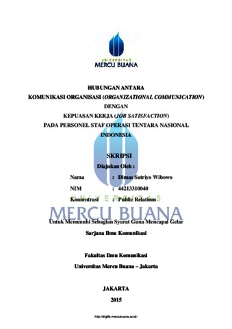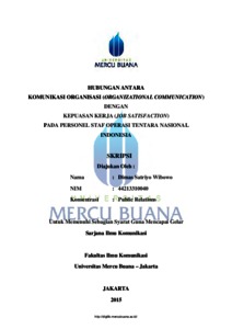 Wibowo, Dimas Satriyo (2015) HUBUNGAN ANTARA KOMUNIKASI ORGANISASI(ORGANIZATIONAL COMMUNICATION) DENGAN KEPUASAN KERJA (JOB SATISFACTION) PADA PERSONEL STAF OPERASI TENTARA NASIONAL INDONESIA. S1 thesis, Universitas Mercu Buana Bekasi.