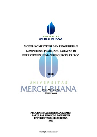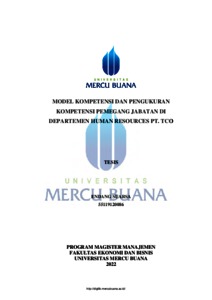SUARSA, ENDANG (2022) MODEL KOMPETENSI DAN PENGUKURAN KOMPETENSI PEMEGANG JABATAN DI DEPARTEMEN HUMAN RESOURCES PT. TCO. S2 thesis, UNIVERSITAS MERCU BUANA.