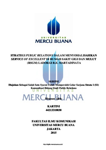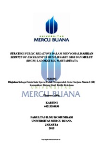 KARTINI, KARTINI (2015) STRATEGI PUBLIC RELATIONS DALAM MENYOSIALISASIKAN SERVICE OF EXCELLENT DIRUMAH SAKIT GIGI DAN MULUT (RSGM) LADOKGI R.E. MARTADINATA. S1 thesis, Universitas Mercu Buana Bekasi.