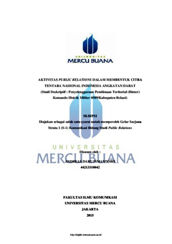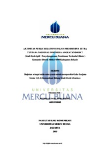 ISMANTORO, ANDREAS DARU (2015) AKTIVITAS PUBLIC RELATIONS DALAM MEMBENTUK CITRA TENTARA NASIONAL INDONESIA ANGKATAN DARAT (Studi Deskriptif : Penyelenggaraan Pembinaan Teritorial (Binter) Komando Distrik Militer 0509/Kabupaten Bekasi). S1 thesis, Universitas Mercu Buana Bekasi.