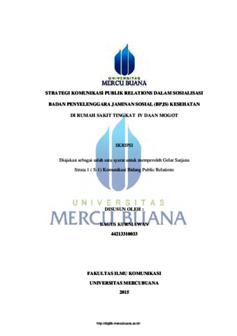 KURNIAWAN, BAGUS (2015) STRATEGI KOMUNIKASI PUBLIK RELATIONS DALAM SOSIALISASI BADAN PENYELENGGARA JAMINAN SOSIAL (BPJS) KESEHATAN DI RUMAH SAKIT TINGKAT IV DAAN MOGOT. S1 thesis, Universitas Mercu Buana Bekasi.