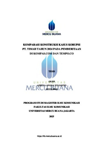 YULIANTO, ADITYA ANGGA (2025) KOMPARASI KONSTRUKSI KASUS KORUPSI PT. TIMAH TAHUN 2024 PADA PEMBERITAAN DI KOMPAS.COM DAN TEMPO.CO. S2 thesis, Universitas Mercu Buana Jakarta.