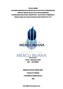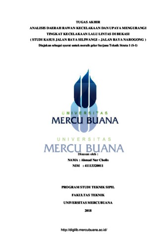 Cholis, Ahmad Nur (2018) ANALISIS DAERAH RAWANKECELAKAAN DAN UPAYA MENGURANGI TINGKAT KECELAKAAN LALU LINTAS DI BEKASI (STUDI KASUS JALAN RAYA SILIWANGI– JALAN RAYA NAROGONG). S1 thesis, Universitas Mercu Buana Bekasi.