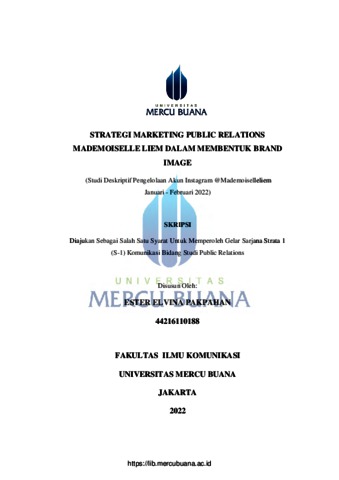 PAKPAHAN, ESTER ELVINA (2022) STRATEGI MARKETING PUBLIC RELATIONS MADEMOISELLE LIEM DALAM MEMBENTUK BRAND IMAGE (Studi Deskriptif Pengelolaan Akun Instagram @Mademoiselleliem Januari - Februari 2022). S1 thesis, Universitas Mercu Buana Jakarta.