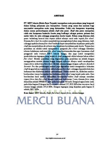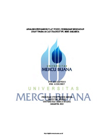 SANTOSO, DWI ADI (2022) ANALISIS PENGARUH FLAT WHEEL TERHADAP KEKUATAN SHAFT PADA M-CAR TRAINSET PT. MRT JAKARTA. S1 thesis, UNIVERSITAS MERCU BUANA.