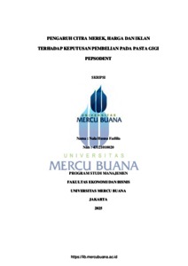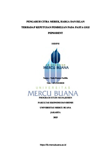 FADLILA, NALA HUSNA (2025) PENGARUH CITRA MEREK, HARGA DAN IKLAN TERHADAP KEPUTUSAN PEMBELIAN PADA PASTA GIGI PEPSODENT. S1 thesis, Universitas Mercu Buana Jakarta.