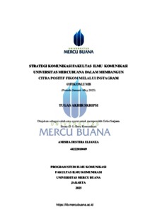 ELIANZA, AMISHA DESTIRA (2025) STRATEGI KOMUNIKASI FAKULTAS ILMU KOMUNIKASI UNIVERSITAS MERCUBUANA DALAM MEMBANGUN CITRA POSITIF FIKOM MELALUI INSTAGRAM @FIKOM.UMB (Periode Januari -May 2025). S1 thesis, Universitas Mercu Buana Jakarta.