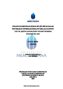 KESYABILLA, SARAH (2025) STRATEGI KOMUNIKASI HUMAS SETJEN DPR RI DALAM PENYEBARAN INFORMASI EDUKATIF MELALUI KONTEN TIKTOK @EDUKASIPARLEMEN SEGMEN REDUKSI PERIODE 2024-2025. S1 thesis, Universitas Mercu Buana Jakarta.