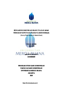 DWICAKSONO, ABI (2025) PENGARUH KOMUNIKASI ORANG TUA DAN ANAK TERHADAP KEPUTUSAN PILIHAN KARIER REMAJA (Survey Pada Remaja di Jakarta Barat). S1 thesis, Universitas Mercu Buana Jakarta.
