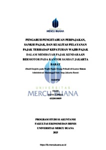 FARIDA, HANA (2025) PENGARUH PENGETAHUAN PERPAJAKAN, SANKSI PAJAK, DAN KUALITAS PELAYANAN PAJAK TERHADAP KEPATUHAN WAJIB PAJAK DALAM MEMBAYAR PAJAK KENDARAAN BERMOTOR PADA KANTOR SAMSAT JAKARTA BARAT (Studi Empiris pada Wajib Pajak Orang Pribadi di Kantor Sistem Administrasi Manunggal Satu Atap Jakarta Barat). S1 thesis, Universitas Mercu Buana Jakarta.