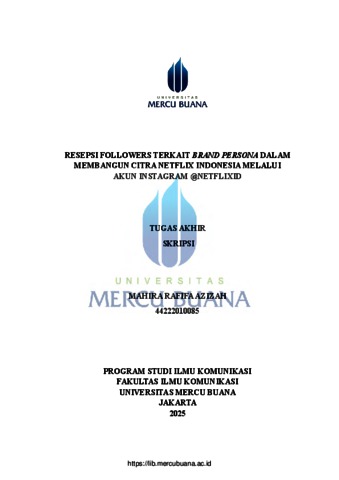 AZIZAH, MAHIRA RAFIFA (2025) RESEPSI FOLLOWERS TERKAIT BRAND PERSONA DALAM MEMBANGUN CITRA NETFLIX INDONESIA MELALUI AKUN INSTAGRAM @NETFLIXID. S1 thesis, Universitas Mercu Buana Jakarta.