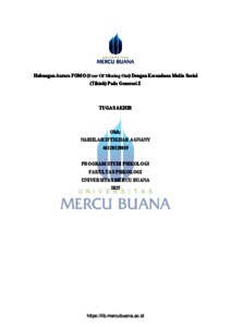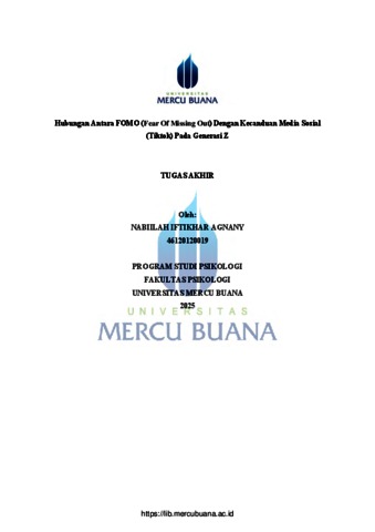 AGNANY, NABIILAH IFTIKHAR (2025) HUBUNGAN ANTARA FOMO (FEAR OF MISSING OUT) DENGAN KECANDUAN MEDIA SOSIAL (Tiktok) PADA GENERASI Z. S1 thesis, Universitas Mercu Buana Jakarta.