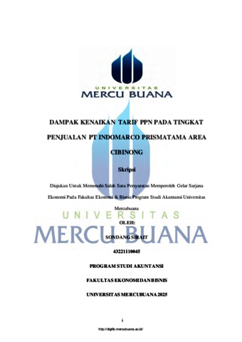 SIRAIT, SONDANG (2025) DAMPAK KENAIKAN TARIF PPN PADA TINGKAT PENJUALAN PT INDOMARCO PRISMATAMA AREA CIBINONG. S1 thesis, UNIVERSITAS MERCU BUANA.