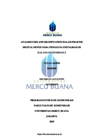AUGUSTIN, MICHELIN (2026) ANALISIS USES AND GRATIFICATION DALAM PRAKTIK DIGITAL DETOX PADA PENGGUNA INSTAGRAM DI KALANGAN GENERASI Z. S1 thesis, Universitas Mercu Buana Jakarta.