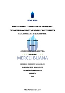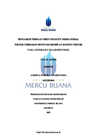 CHAIRUNNISA, AURIELA FEBIOLA (2025) PENGARUH TERPAAN TREN VELOCITY MEDIA SOSIAL TIKTOK TERHADAP MOTIVASI MEMBUAT KONTEN TIKTOK PADA GENERASI Z DI JABODETABEK. S1 thesis, Universitas Mercu Buana Jakarta.
