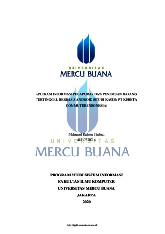 SHOBARI, MUHAMAD RIDWAN (2020) APLIKASI INFORMASI PELAPORAN DAN PENEMUAN BARANG TERTINGGAL BERBASIS ANDROID (STUDI KASUS : PT KERETA COMMUTER INDONESIA). S1 thesis, UNIVERISTAS MERCU BUANA - BUNCIT.
