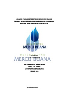 AKMAL, ZAIM (2019) ANALISIS VARIAS METODE PENDINGINAN CNC MILLING OKUMA & HOWA TIPE FMR -40 PADA KEKASARAN PERMUKAAN MATERIAL S50C DENGAN METODE TAGUCHI. S1 thesis, UNIVERISTAS MERCU BUANA - BUNCIT.