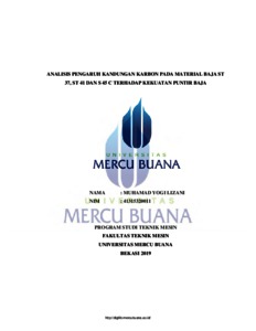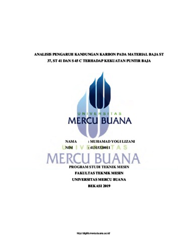 LIZANI, MUHAMAD YOGI (2019) ANALISIS PENGARUH KANDUNGAN KARBON PADA MATERIAL BAJA ST 37, ST 41 C TERHADAP KEKUATAN PUNTIR BAJA. S1 thesis, UNIVERISTAS MERCU BUANA - BUNCIT.