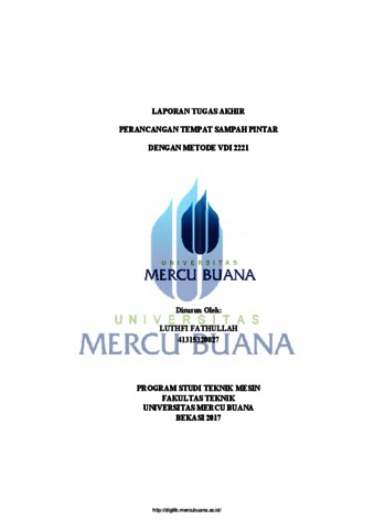 LUTHFI, FATHULLAH (2017) PERANCANGAN TEMPAT SAMPAH PINTAR DENGAN METODE VDI 2221. S1 thesis, UNIVERSITAS MERCU BUANA.