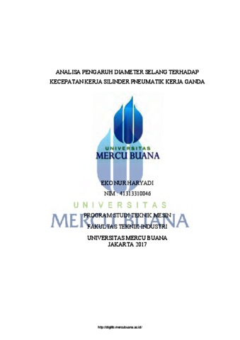 NUR HARYADI, EKO (2017) ANALISA PENGARUH DIAMETER SELANG TERHADAP KECEPATAN KERJA SILINDER PNEUMATIK KERJA GANDA EKO NUR HARYADI. S1 thesis, Universitas Mercu Buana Bekasi.