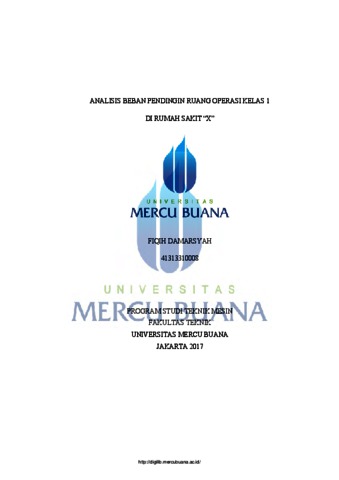 DAMARSYAH, FIQIH (2017) ANALISIS BEBAN PENDINGIN RUANG OPERASI KELAS 1 DI RUMAH SAKIT “X”. S1 thesis, Universitas Mercu Buana Bekasi.